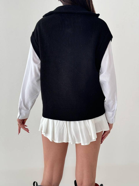 Thick Ribbed Fisherman's Knitwear Top - BLACK