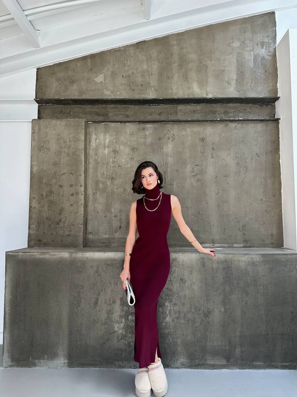 Burgundy Knitwear Set (Dress + Cardigan)